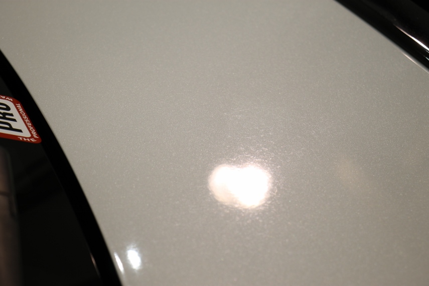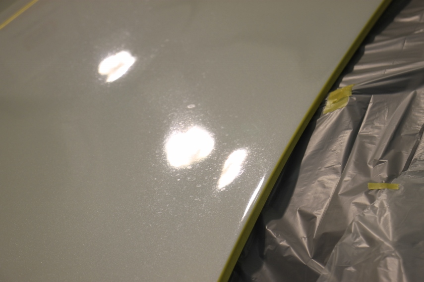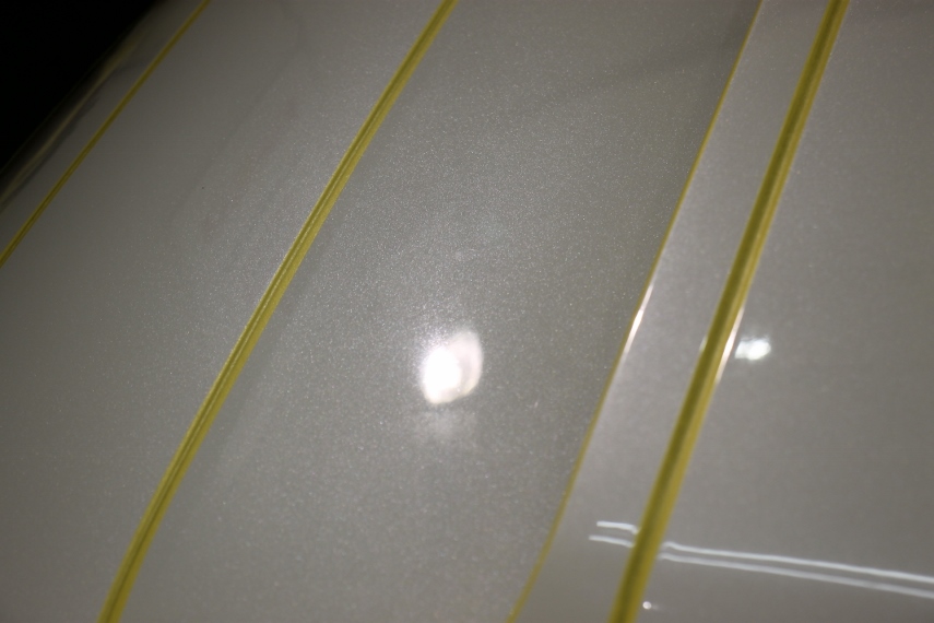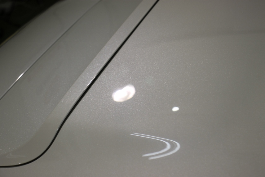 お隣さんの庭の水やりの水がクルマに掛かるようで雨シミ除去の依頼です