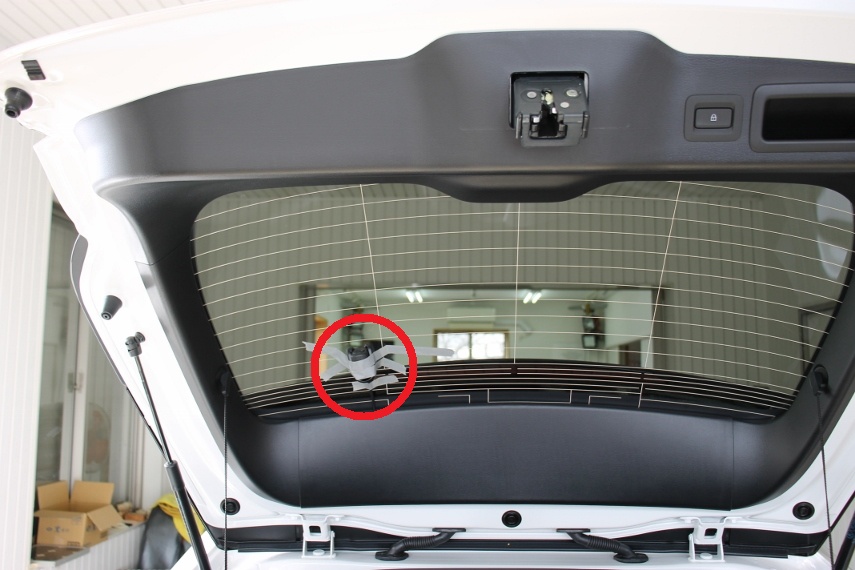 また両面テープはリア窓ガラスの熱線をさけて貼ってください